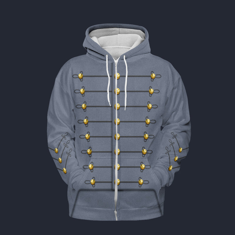 Modetrail American Cadet George Armstrong Custer 1860s Fleece Zip Hoodie Costume, American History Costume S-5XL US Size, Gift For Him, Gift For Him