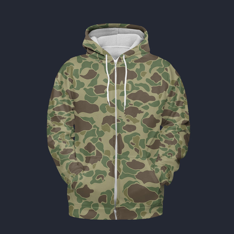 Modetrail American Frog Skin Jungle Camo Fleece Zip Hoodie Costume, Military Costume S-5XL US Size, Gift For Him