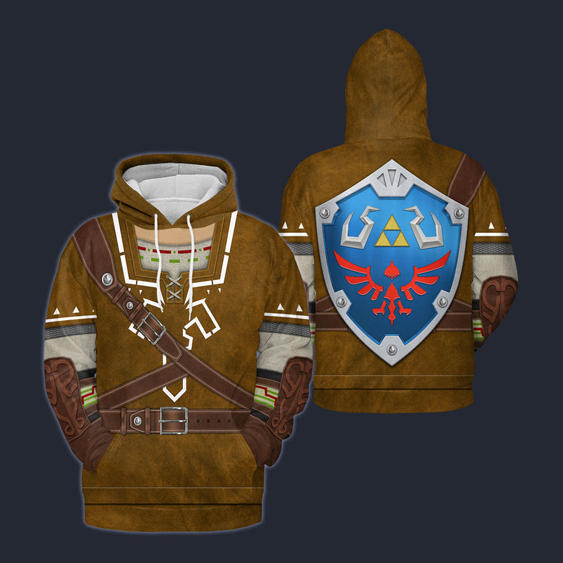Modetrail Brown Link Attire Zelda Hylian Shield Hoodie Costume, The Legend of Zelda Costume S-5XL US Size, Gift For Him