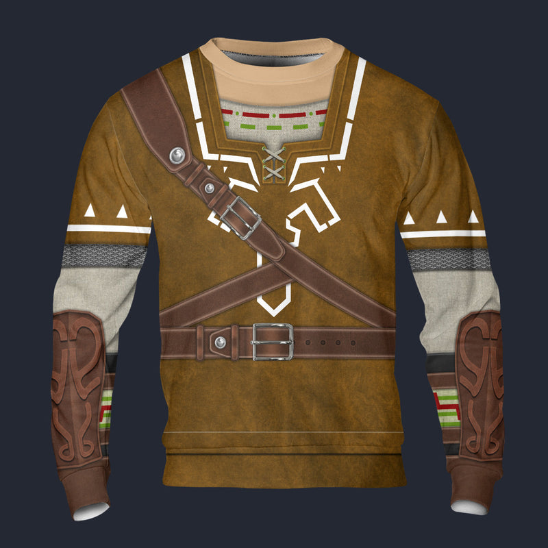 Modetrail Brown Link Attire Zelda Hylian Shield Long Sleeves Costume, The Legend of Zelda Costume S-5XL US Size, Gift For Him