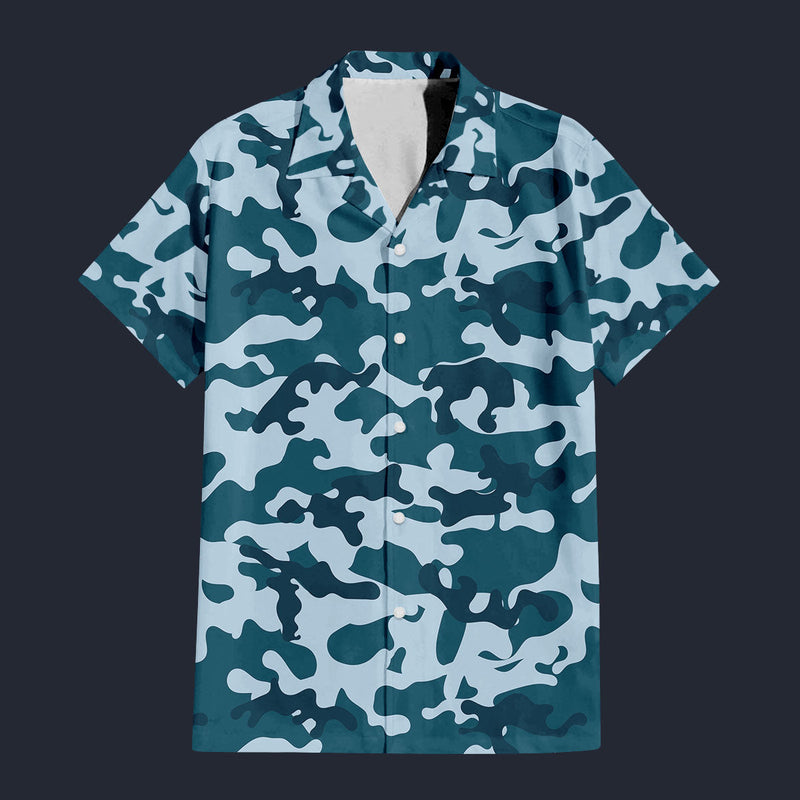 Modetrail Blue Camouflage Set 2 Hawaiian Shirt Costume, Military Costume S-5XL US Size, Unisex Button Down Shirt