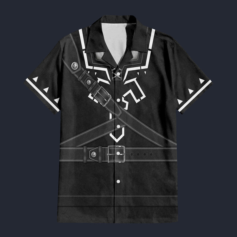 Modetrail Dark Link Zelda Hylian Shield Hawaiian Shirt Costume, The Legend of Zelda Costume S-5XL US Size, Unisex Button Down Shirt
