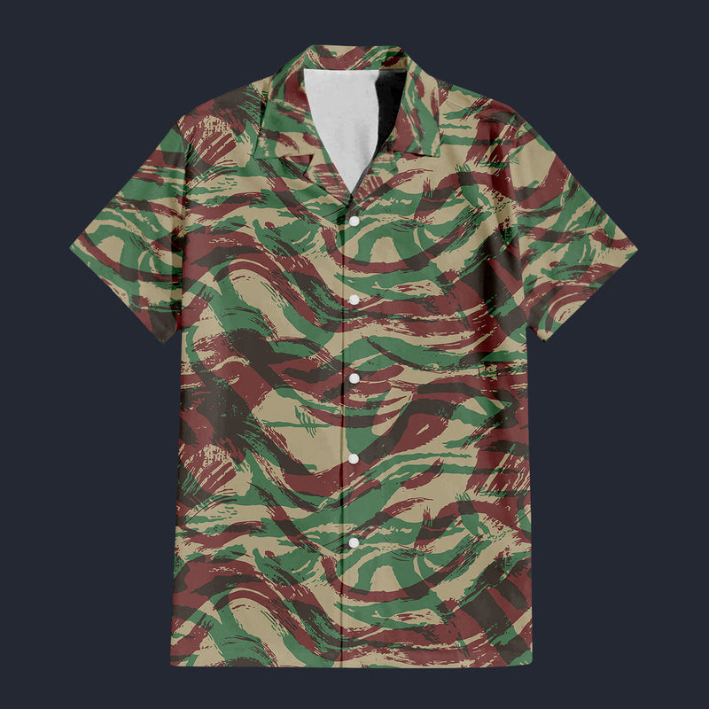 Modetrail French Lizard Airborne CAMO Set 6 Hawaiian Shirt Costume, Military Costume S-5XL US Size, Unisex Button Down Shirt