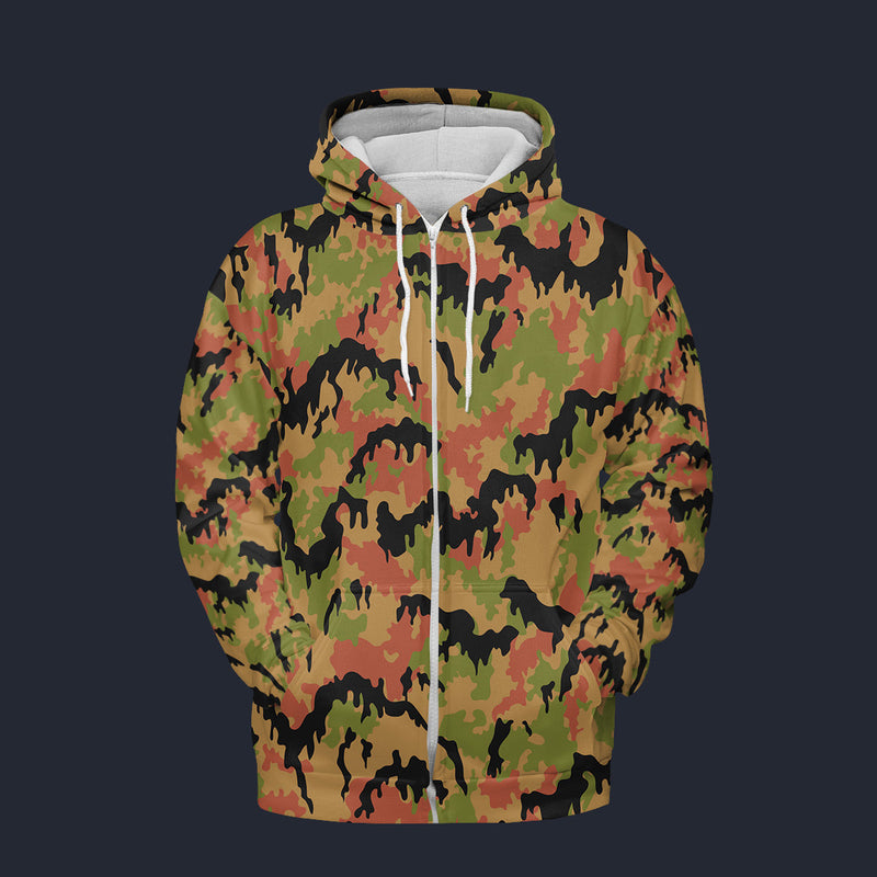 Modetrail German Leibermuster Autumn Camo Zip Hoodie Costume, Military Costume S-5XL US Size, Gift For Him