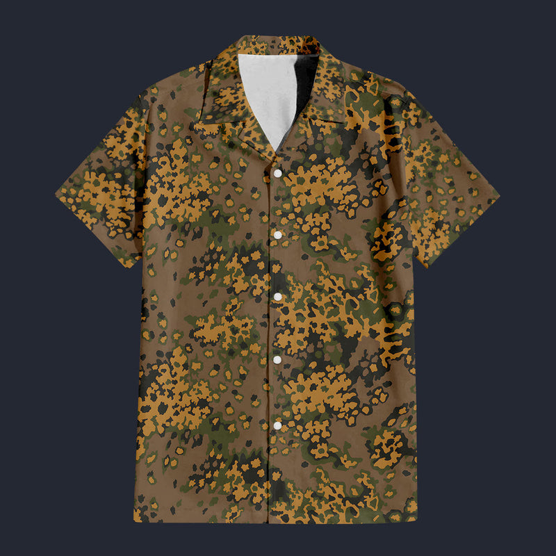 Modetrail German Oak Leaf Eichenlaubmuster Autumn Camo Hawaiian Shirt Costume, Military Costume S-5XL US Size, Unisex Button Down Shirt