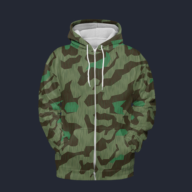 Modetrail German Splittermuster 41 Luftwaffen Camo Fleece Zip Hoodie Costume, Military Costume S-5XL US Size, Gift For Him