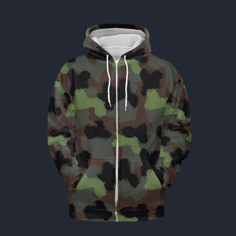 Modetrail German Truppenversuch Punkttarnmuster Camo Fleece Zip Hoodie Costume, Military Costume S-5XL US Size, Gift For Him