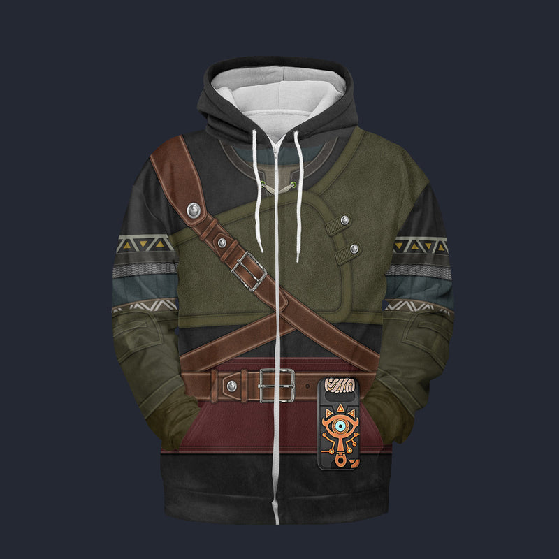 Modetrail Hylian Set Black Fleece Zip Hoodie Costume, The Legend of Zelda Costume S-5XL US Size, Gift For Him