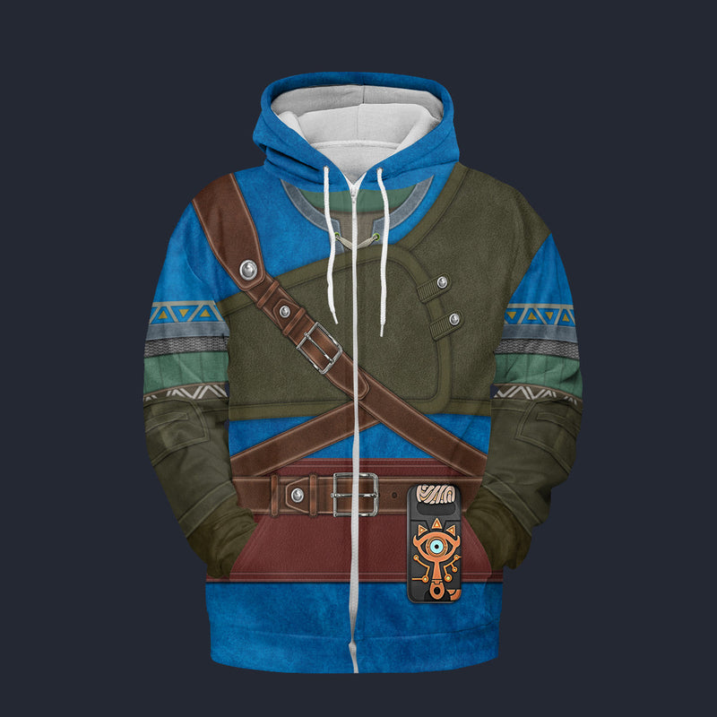 Modetrail Hylian Set Blue Fleece Zip Hoodie Costume, The Legend of Zelda Costume S-5XL US Size, Gift For Him