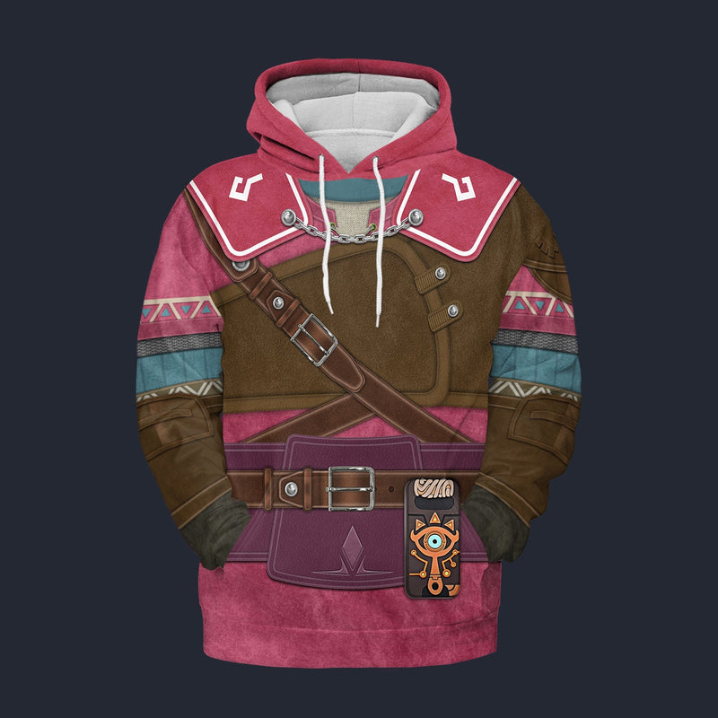 Modetrail Hylian Set Pink Champion_s Tunic Fleece Hoodie Costume, The Legend of Zelda Costume S-5XL US Size, Gift For Him