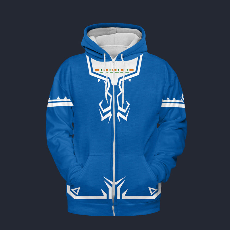 Modetrail Link Breath of the Wild Champion Tunic Blue Version 2 Fleece Zip Hoodie Costume, The Legend of Zelda Costume S-5XL US Size, Gift For Him