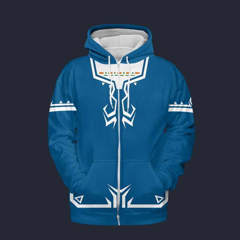 Modetrail Link Breath of the Wild Champion Tunic Version 2 Fleece Zip Hoodie Costume, The Legend of Zelda Costume S-5XL US Size, Gift For Him