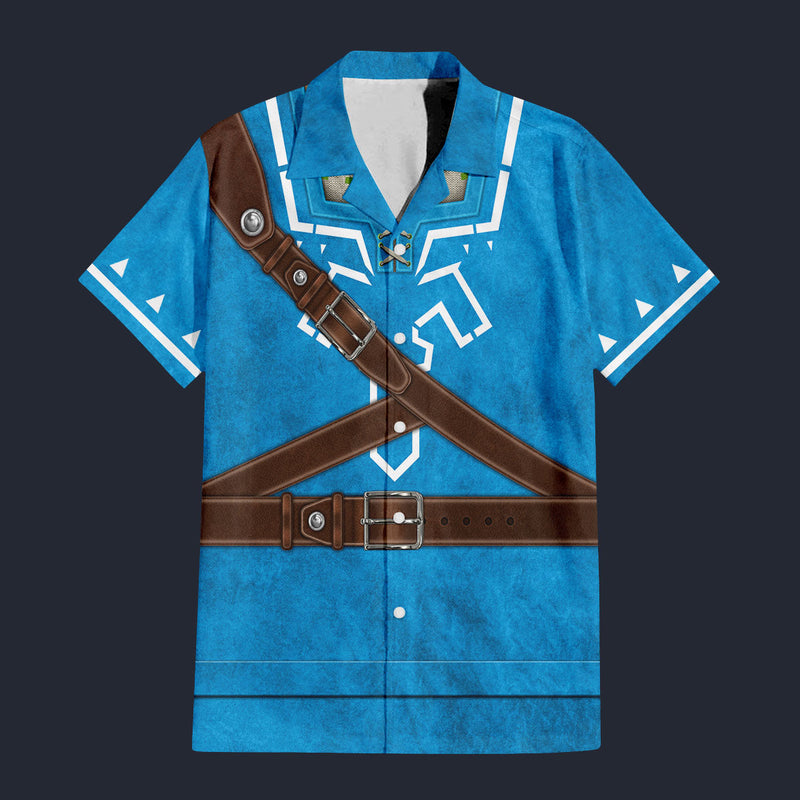 Modetrail Link Zelda Champion_s Tunic Hylian Shield Hawaiian Shirt Costume, The Legend of Zelda Costume S-5XL US Size, Unisex Button Down Shirt