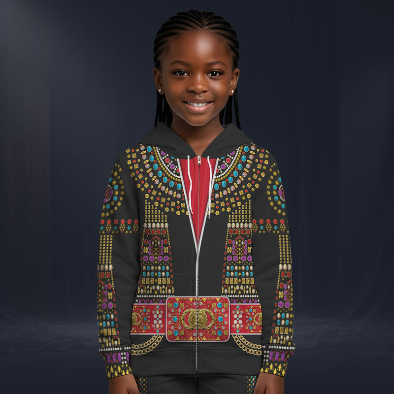 Modetrail Elvis Presley Egyptian Black Zip Hoodie Costume For Kid, S-5XL US Size