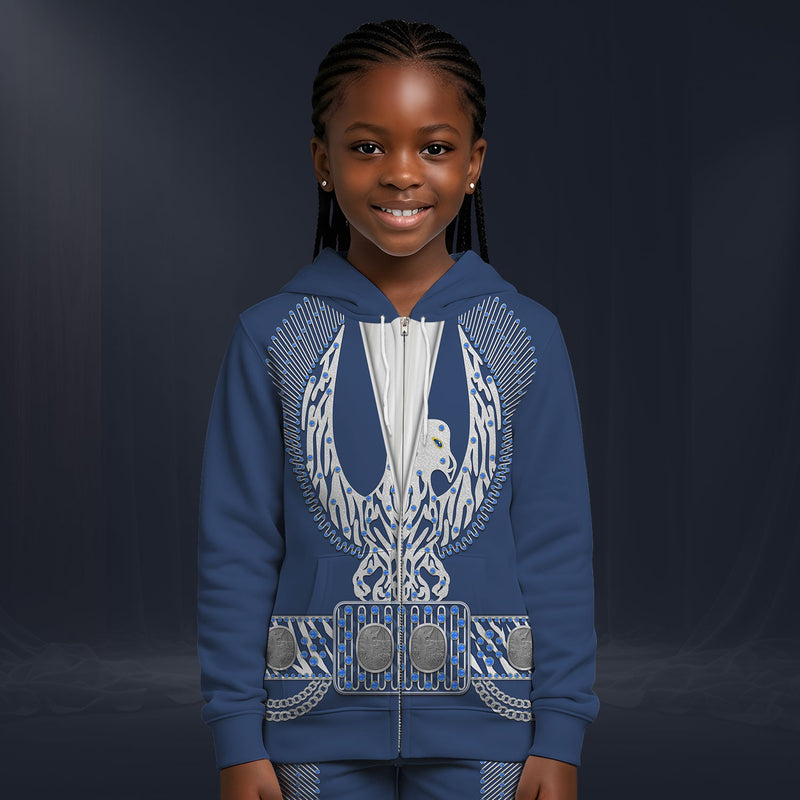 Modetrail Elvis Presley Royal Blue Phoenix Zip Hoodie Costume For Kid, S-5XL US Size