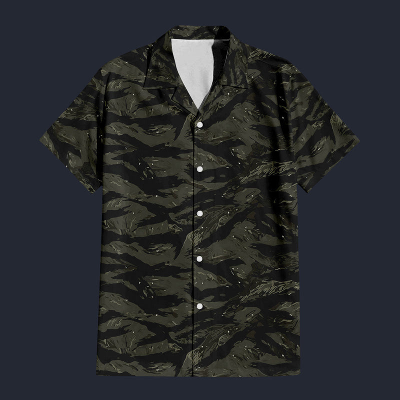 Modetrail Military American Tiger Stripe Highland Triple Canopy CAMO Outfit Hawaiian Shirt, Military Costume S-5XL US Size, Unisex Button Down Shirt