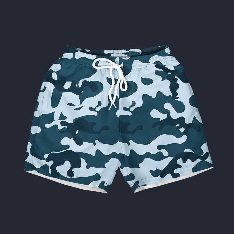 Modetrail Blue Camouflage Set 2 Outfit Beach Short, Military Costume S-5XL US Size