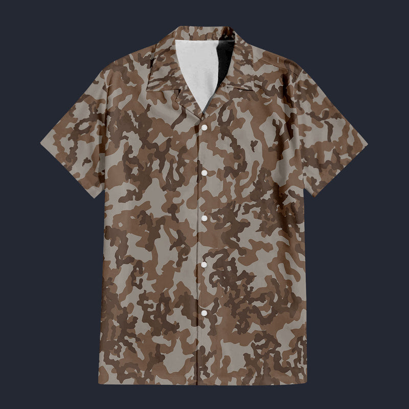 Modetrail Brown Camouflage Outfit Hawaiian Shirt, Military Costume S-5XL US Size, Unisex Button Down Shirt