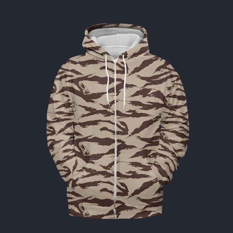 Modetrail Moroccan Lizard Desert Camo Fleece Zip Hoodie Costume, Military Costume S-5XL US Size, Gift For Him