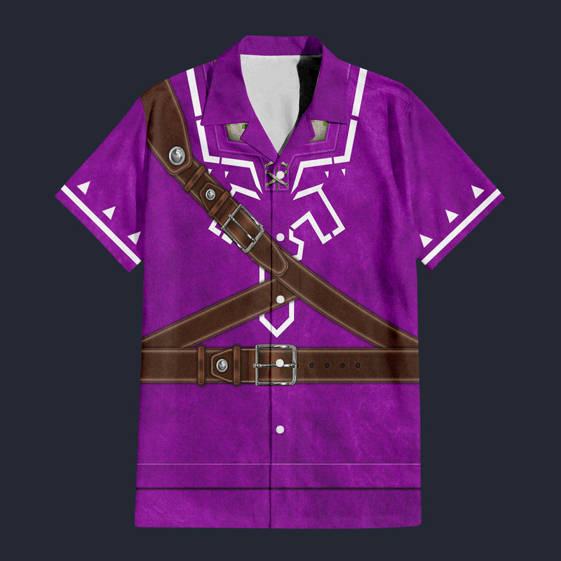 Modetrail Purple Link Attire Zelda Hylian Shield Hawaiian Shirt Costume, The Legend of Zelda Costume S-5XL US Size, Unisex Button Down Shirt