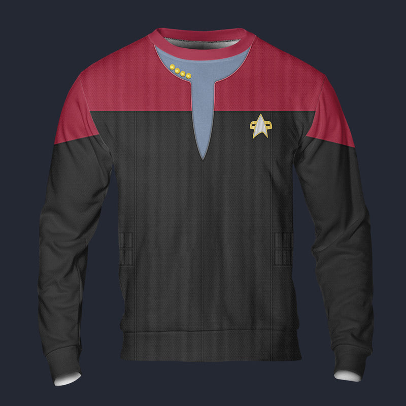 Modetrail Star Trek Starfleet Uniform Deep Space Nine Red Long Sleeves Costume, S-5XL US Size, Gift For Him