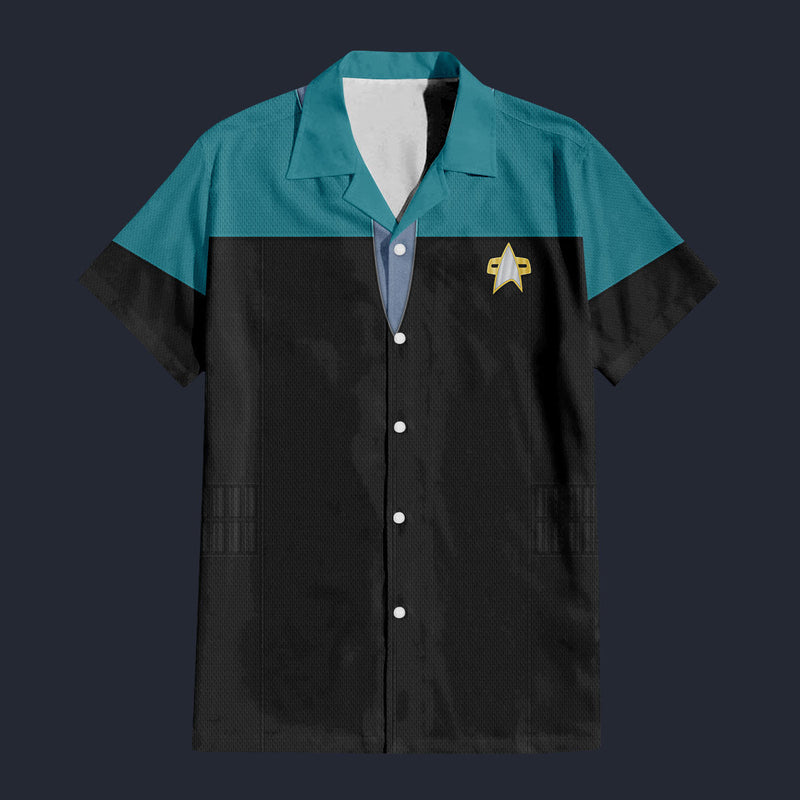 Modetrail Star Trek Starfleet Uniform Deep Space Nine Teal Blue Hawaiian Shirt Costume, S-5XL US Size, Unisex Button Down Shirt