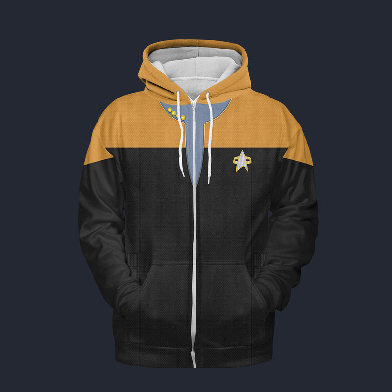 Modetrail Star Trek Starfleet Uniform Deep Space Nine Yellow Fleece Zip Hoodie Costume, S-5XL US Size, Gift For Him