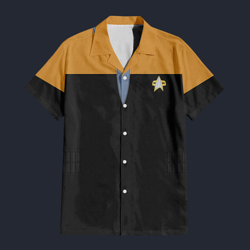 Modetrail Star Trek Starfleet Uniform Deep Space Nine Yellow Hawaiian Shirt Costume, S-5XL US Size, Unisex Button Down Shirt