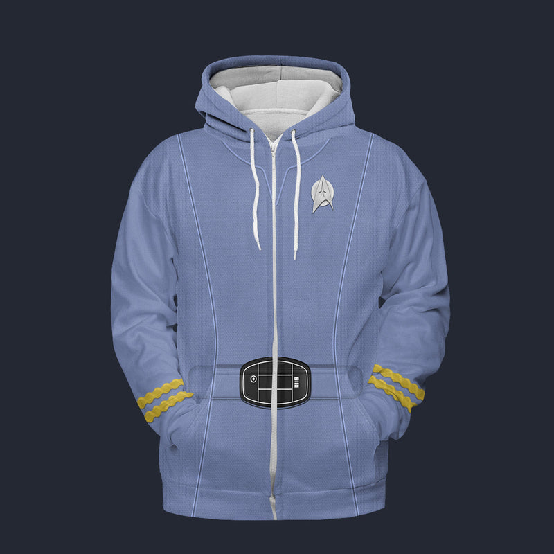 Modetrail Star Trek Starfleet Uniform Mid 2270s Weldon Blue Fleece Zip Hoodie Costume, S-5XL US Size, Gift For Him