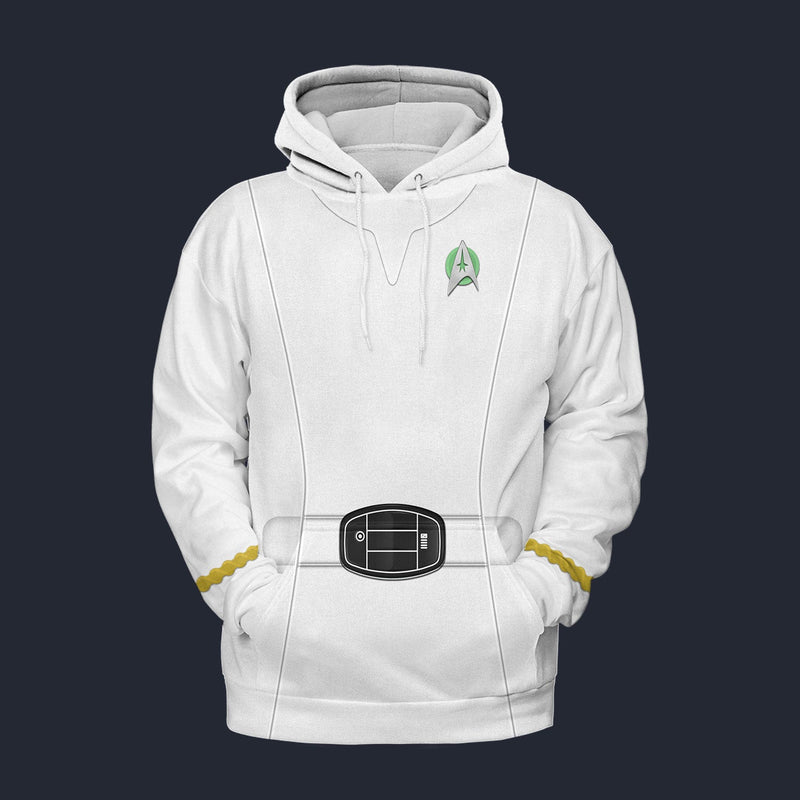 Modetrail Star Trek Starfleet Uniform Mid 2270s White Hoodie Costume, S-5XL US Size, Gift For Him