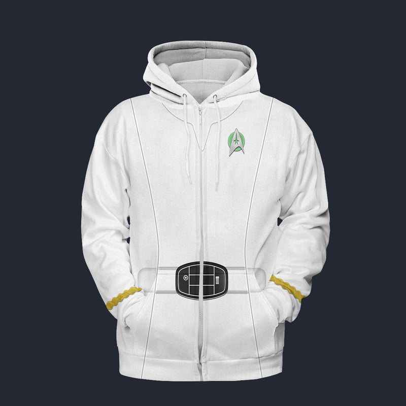 Modetrail Star Trek Starfleet Uniform Mid 2270s White Fleece Zip Hoodie Costume, S-5XL US Size, Gift For Him