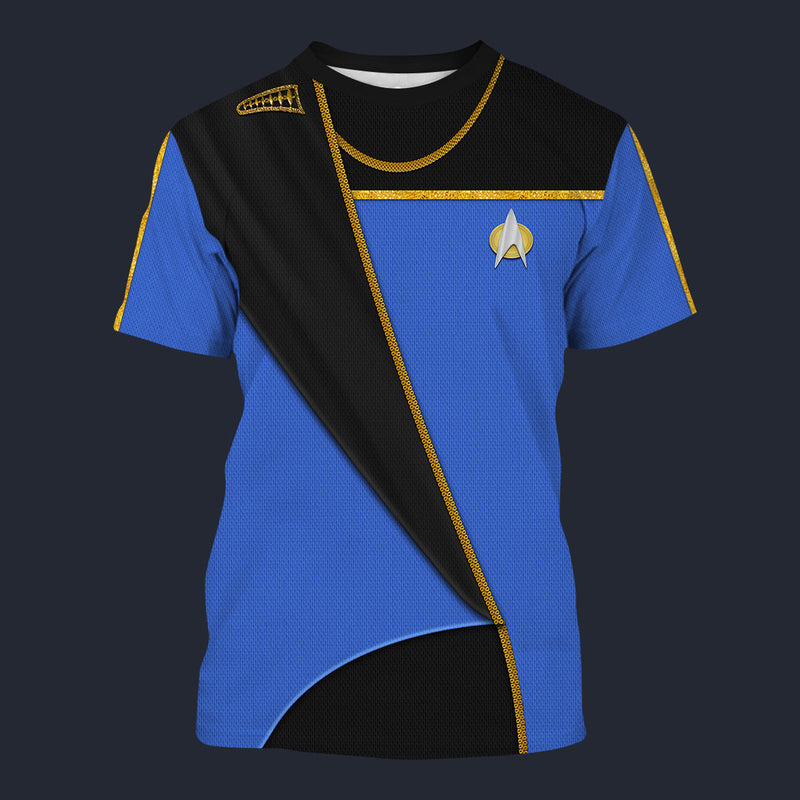 Modetrail Star Trek TNG Science Uniform Blue T-shirt Costume, S-5XL US Size, Gift For Him