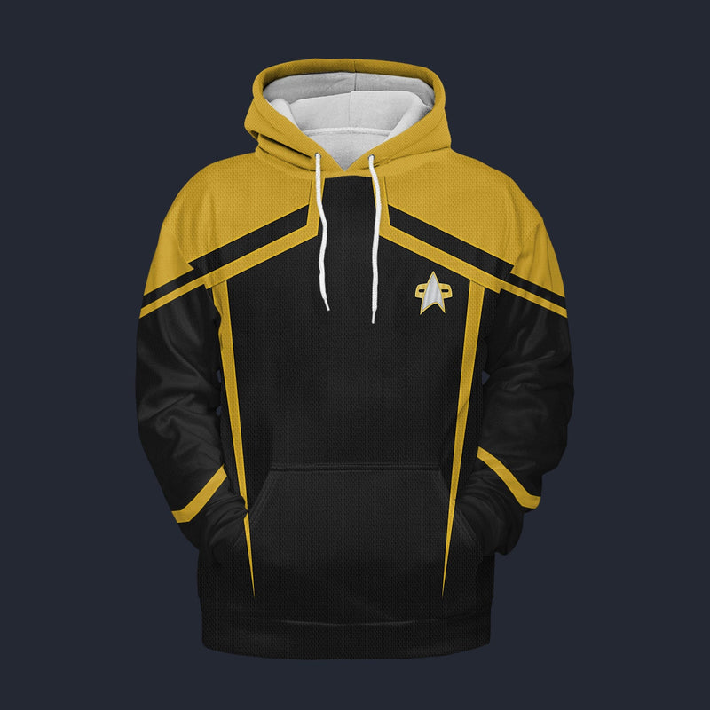 Modetrail Star Trek Starfleet Uniform Circa 2385 Command Yellow Fleece Hoodie Costume, S-5XL US Size, Gift For Him