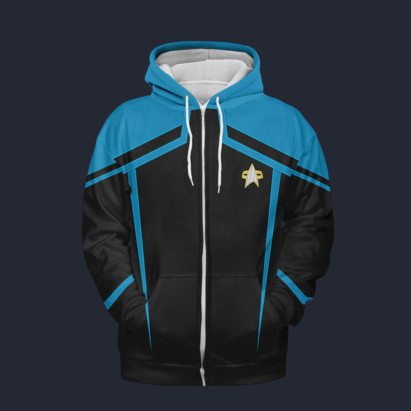 Modetrail Star Trek Starfleet Uniform Circa 2385 Science Blue Fleece Zip Hoodie Costume, S-5XL US Size, Gift For Him
