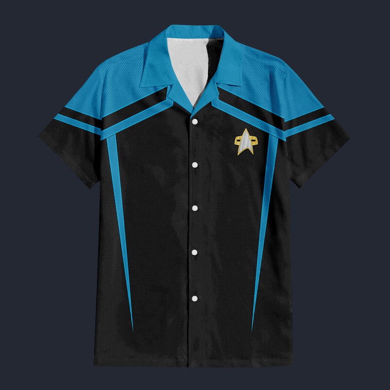 Modetrail Star Trek Starfleet Uniform Circa 2385 Science Blue Hawaiian Shirt Costume, S-5XL US Size, Unisex Button Down Shirt