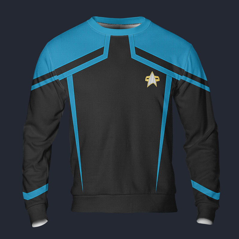 Modetrail Star Trek Starfleet Uniform Circa 2385 Science Blue Long Sleeves Costume, S-5XL US Size, Gift For Him