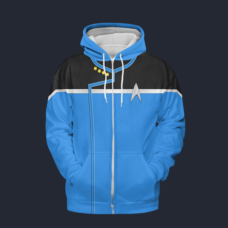 Modetrail Standard Uniform Sceience Division Starfleet 2380_s Zip Hoodie Costume, Star Trek Costume S-5XL US Size, Gift For Him