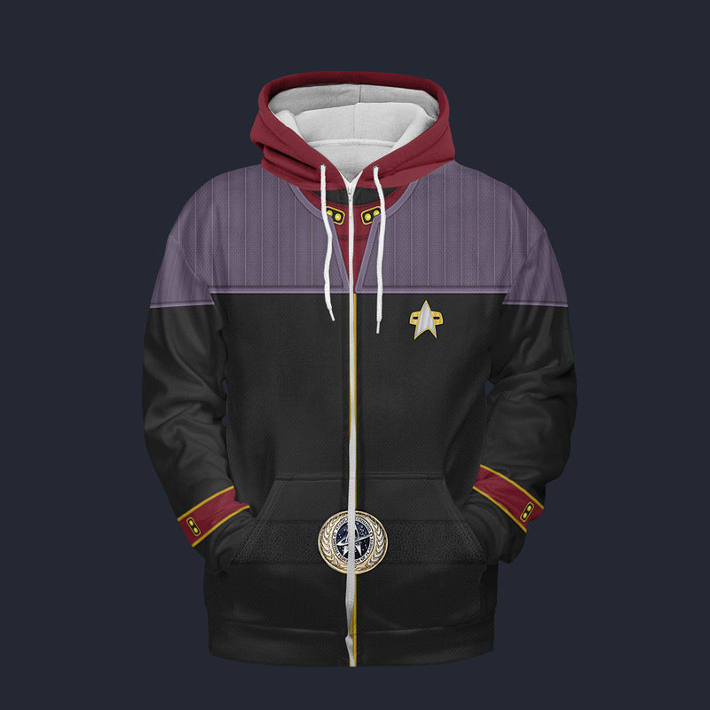 Modetrail Starfleet Flag Officers Duty Uniforms Rear Admiral Zip Hoodie Costume, Star Trek Costume S-5XL US Size, Gift For Him