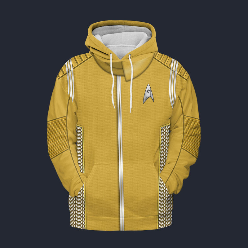 Modetrail Starfleet Yellow Uniform Science Division Discovery Fleece Hoodie Costume, Star Trek Costume S-5XL US Size, Gift For Him