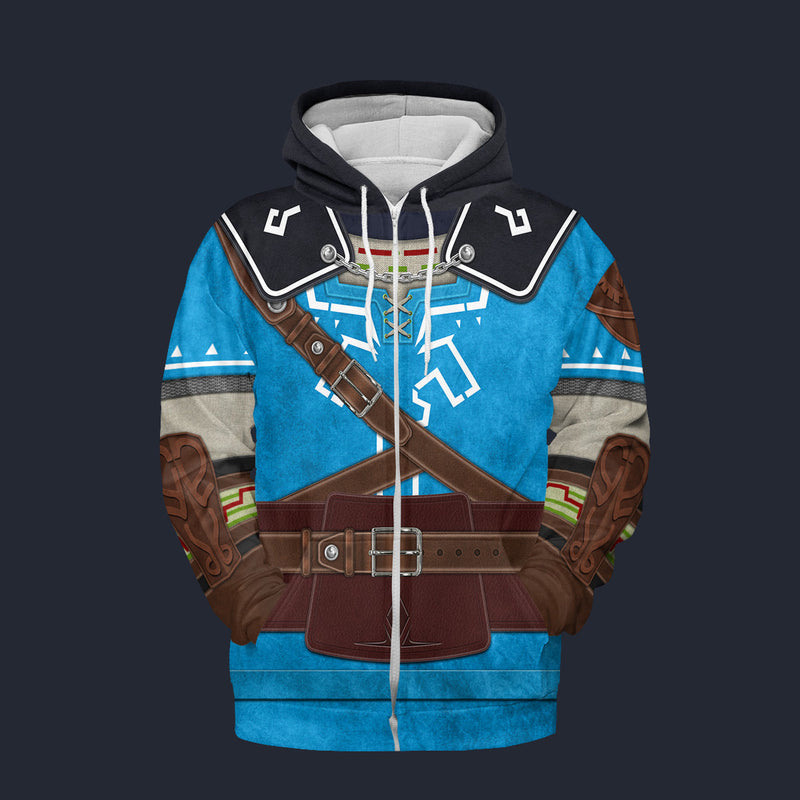 Modetrail Tears Of The Kingdom Link Zelda Champion's Tunic Fleece Zip Hoodie Costume, The Legend of Zelda Costume S-5XL US Size, Gift For Him