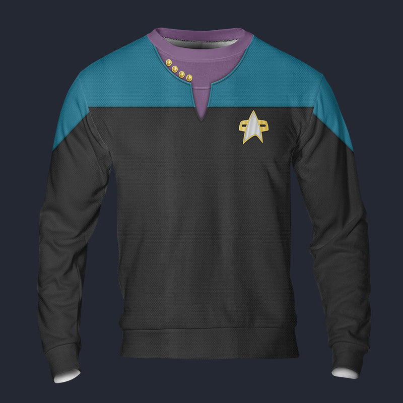 Modetrail Voyager Blue Long Sleeves Costume, Star Trek Costume S-5XL US Size, Gift For Him