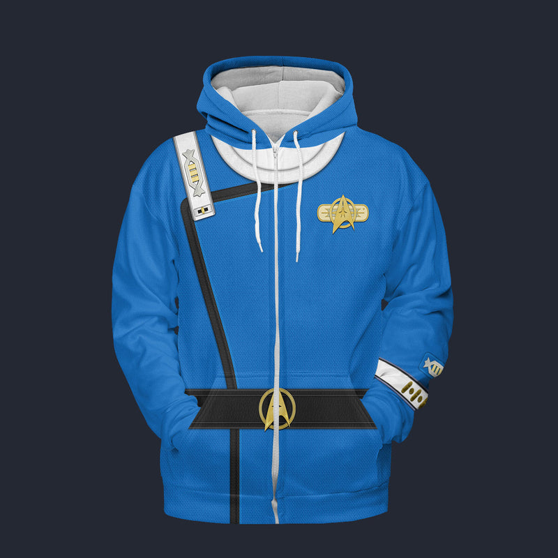 Modetrail Wrath Of Khan Kirk Spock Starfleet Blue Zip Hoodie Costume, Star Trek Costume S-5XL US Size, Gift For Him
