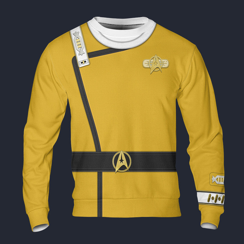 Modetrail Wrath Of Khan Kirk Spock Starfleet Yellow Long Sleeves Costume, Star Trek Costume S-5XL US Size, Gift For Him